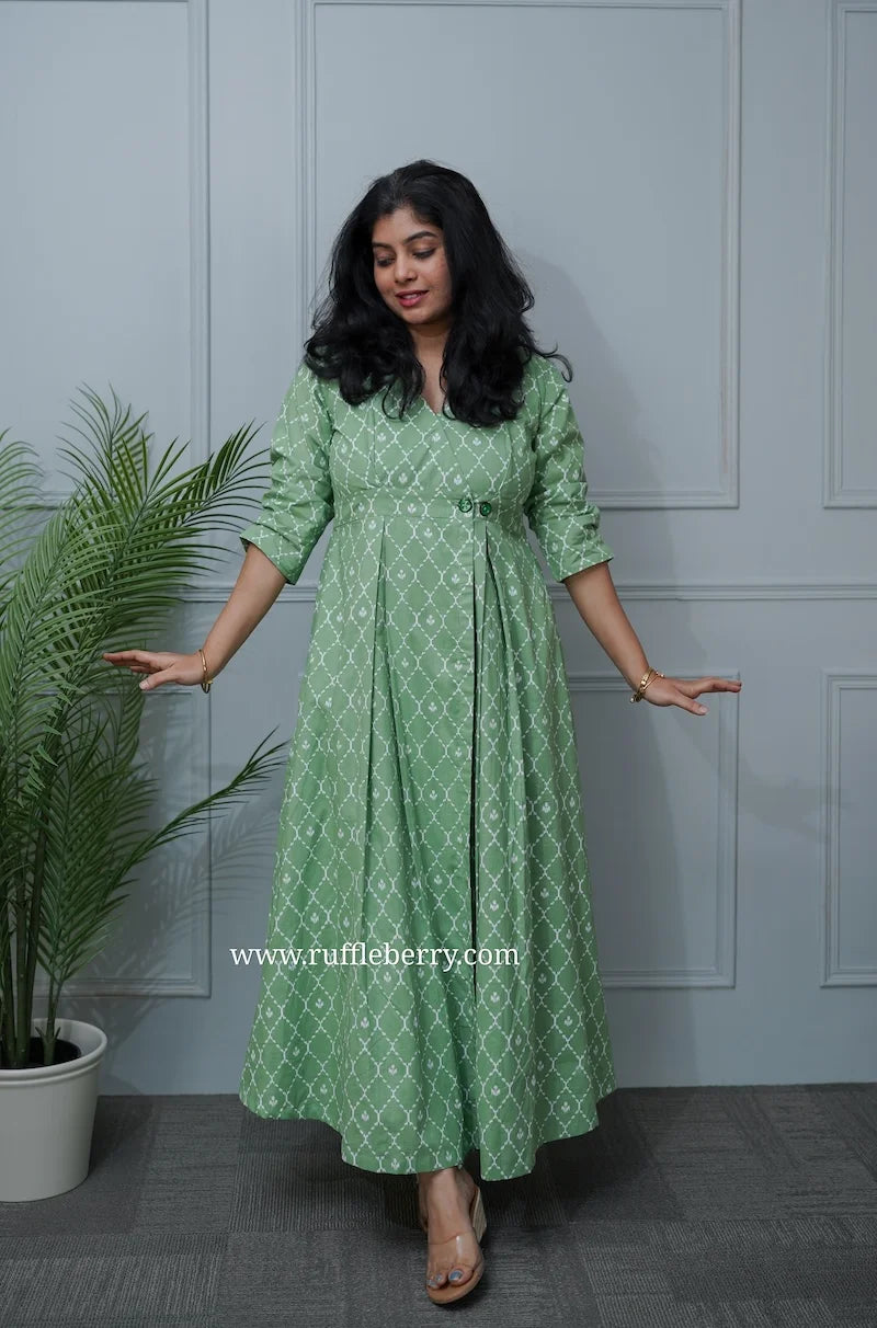 Paisley Green Cotton Button Wrap Dress