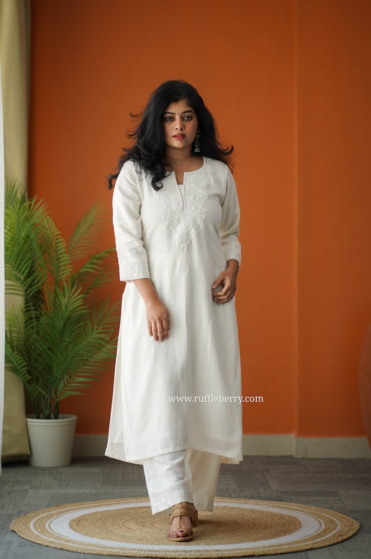 Snow Petals Embroidered Cotton Co-ord set