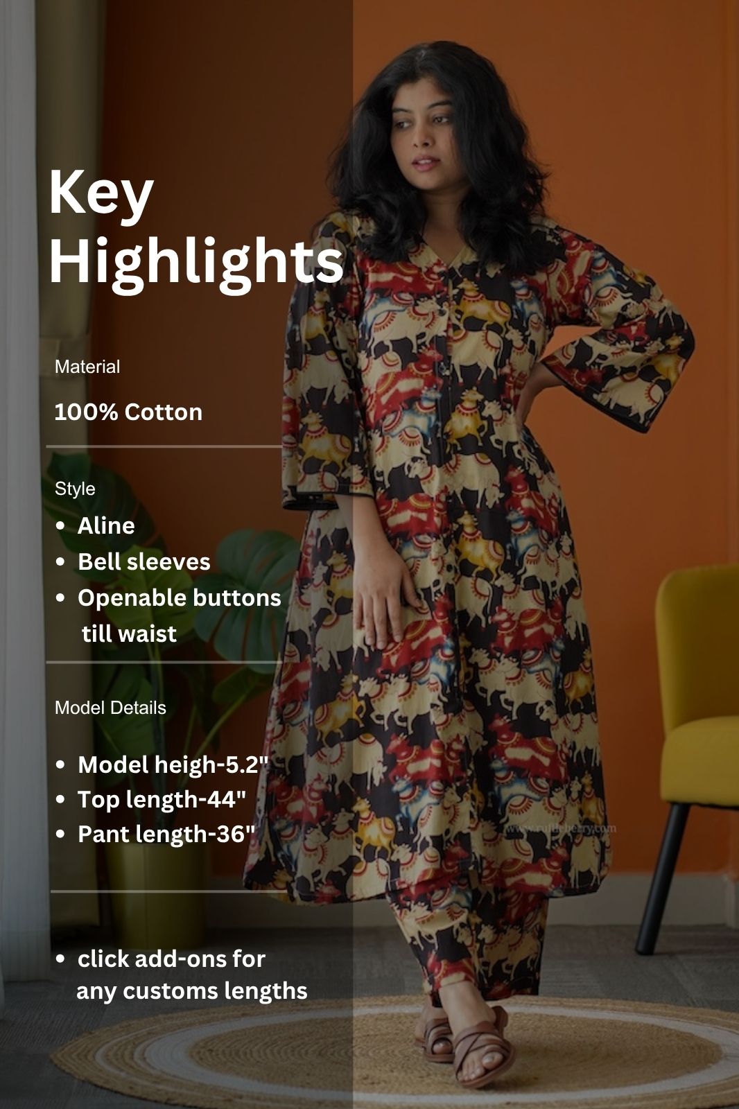 - Sleeves : 3/4th Flared sleeves.